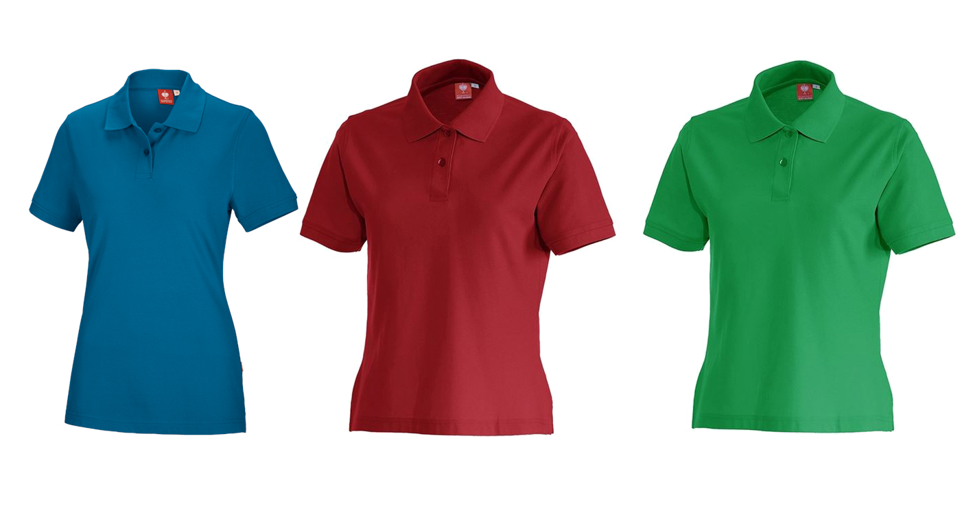 Velmi měkká bavlněná tkanina, ženský střih s polo límečkem, dvojitá knoflíková lišta, rukávové pásky a pásek na šíji, dlouhotrvající brilantnost barev.